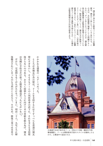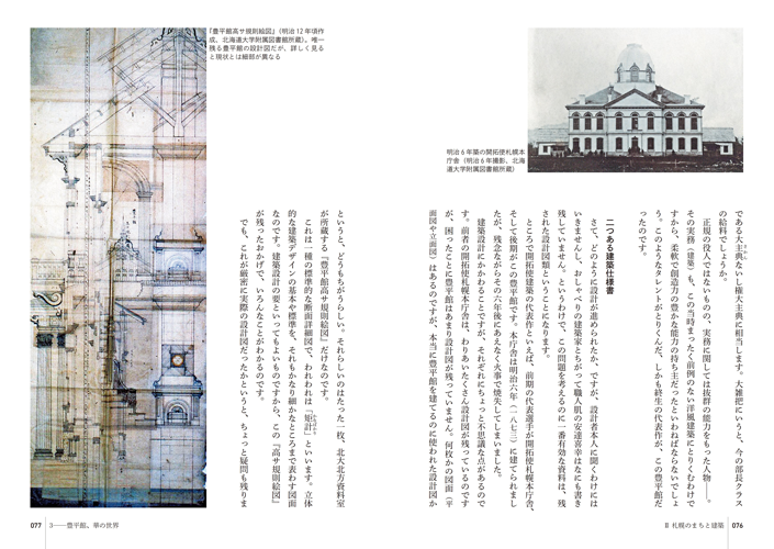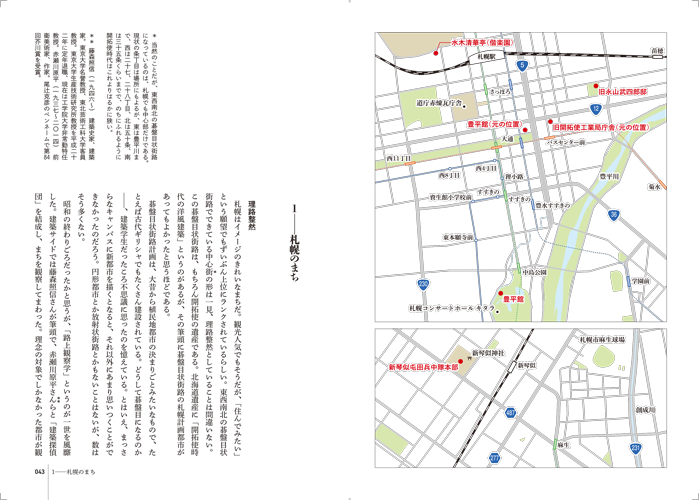 昨年五月、書籍化用に先生が整理されたワープロ原稿が、亜璃西社から私のもとに持ち込まれた。拝読したところ、建築史家としての専門的研究内容が、やわらかい語り口でかみ砕いてつづられているうえ、先生が経験されてきた札幌の建築にまつわる貴重なエピソードも多く含まれ、一般読者の知的好奇心を満足させるものに仕上がっていることから、ぜひとも出版すべきと伝えた。