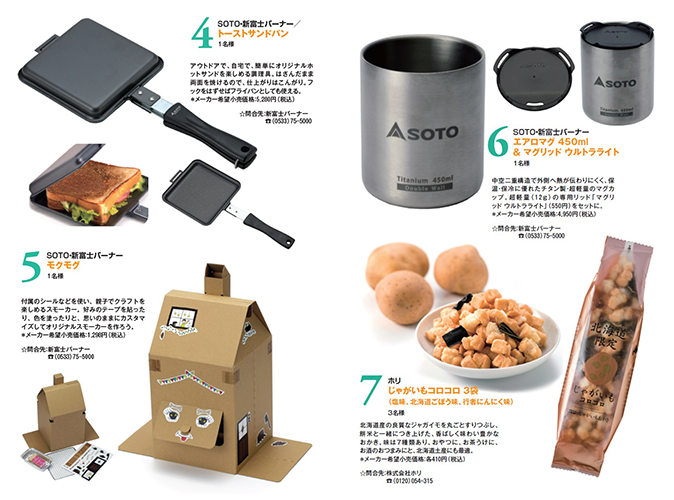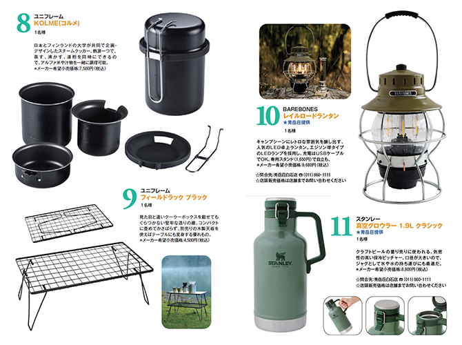 最新のキャンプギア&グッズを多数紹介し、さらに掲載全商品を抽選で読者にプレゼントします。